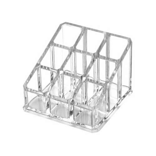 • Organizador de maquilhagem transparente em acrílico com nove compartimentos.