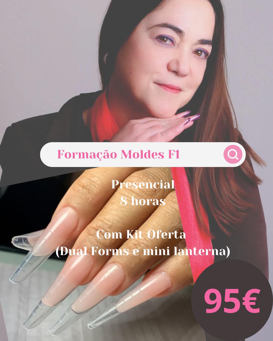 Formação - Moldes F1 / Dual Forms - 8 horas 95,00 € 110,00 € Desconto de %. Partilhar Compre este produto e ganhe 475 Pontos! Comprar Contactar Formação de Moldes F1 com Gel (8 horas) 1. Introdução e teoria básica Apresentação da técnica de moldes F1 2. Preparação da unha natural 3. Seleção e preparação dos moldes F1 4. Aplicação do gel e construção da unha 5. Limagem e acabamento 6. Prática supervisionada Aplicação completa em modelo ou colega Correção de técnica e dúvidas individuais 7. Encerramento e avaliação Kit: Caixa com Moldes F1 - Victoria Vynn e Mini Lanterna