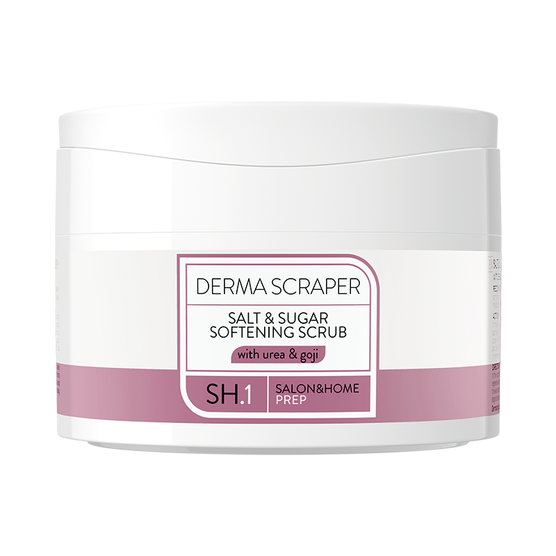 Derma Scraper é um esfoliante de sal e açúcar maravilhosamente perfumado à base de óleos naturais destinado não só para os pés mas também para o cuidado da pele exigente das mãos e do corpo.
