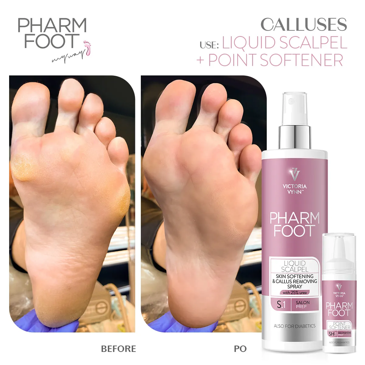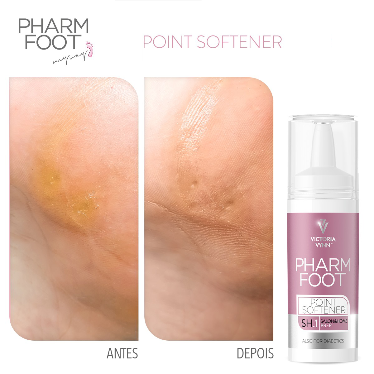 Prepara as zonas difíceis para a remoção de protuberâncias. Recomendado para diabéticos.