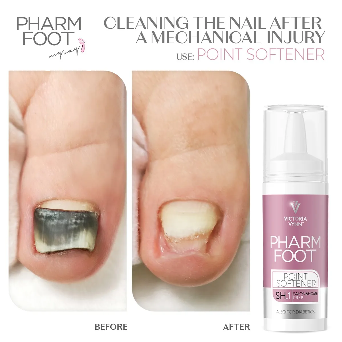 A concentração de 30 % de ureia do produto amacia e prepara com eficácia as zonas definidas para as etapas seguintes do tratamento. A combinação de óleo da árvore do chá natural, cravo, alfazema e hortelã-pimenta faz com que o líquido ajude a uma profilaxia antifúngica e a ter um efeito antibacteriano. Alivia o desconforto associado à pressão e a unhas encravadas.